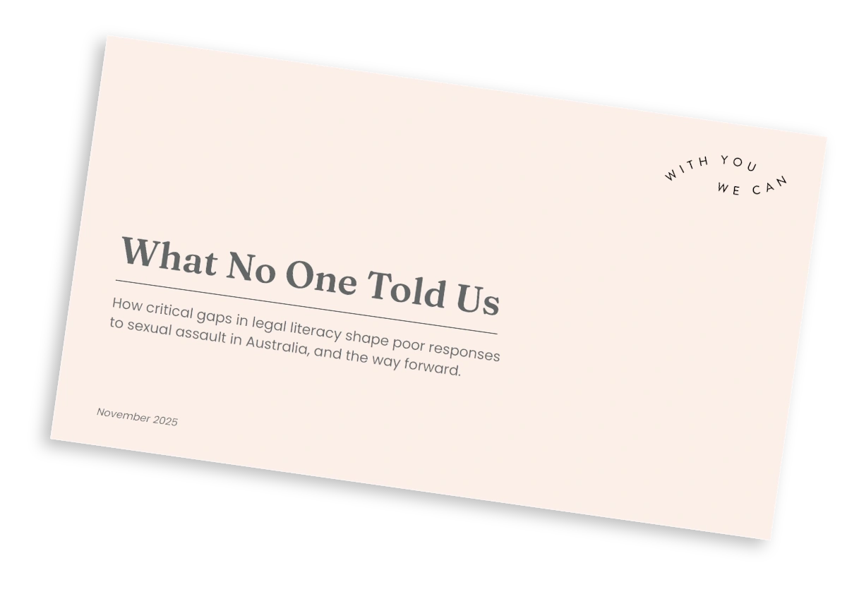 Stigma, suspicion and a lack of support. These are just some of the reasons why only 10% of sexual assaults are reported in Australia. As a result, sexual assault victims are grossly under-represented and do not receive the social or judicial validation that they deserve. While systemic reform is slow-moving, With You We Can is fighting for victims now, by empowering victims to fight for each other. If we create understanding around our criminal justice system, we change outcomes for victims everywhere.