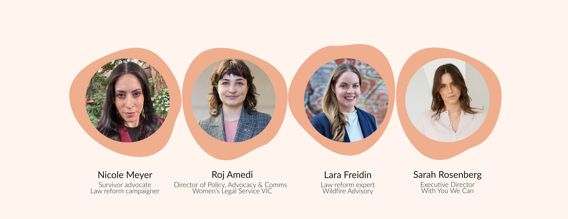 Following Nicole’s story, legal reform advocate Lara Freidin will facilitate a panel discussion with Nicole, alongside Executive Director of With You We Can Sarah Rosenberg and Director of Policy, Advocacy and Communications at Women’s Legal Service Victoria, Roj Amedi. Together, they will explore what meaningful reform could look like in Victoria, and how lived experience can drive it.